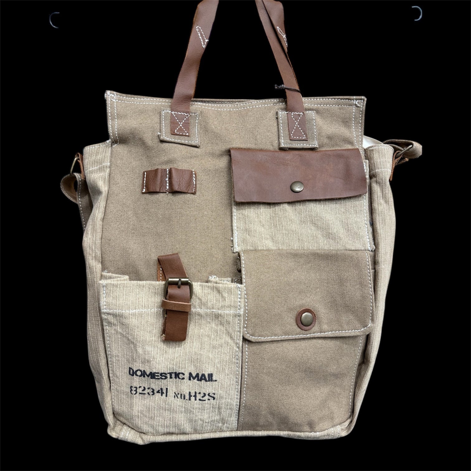 Crafted from reclaimed outdoor tent materials, this distinctive messenger bag gives new life to vintage textiles while honoring sustainable practices. Authentic leather accents add durability and timeless style to a piece that carries both function and purpose. Perfect for those who value quality craftsmanship and environmentally conscious choices.