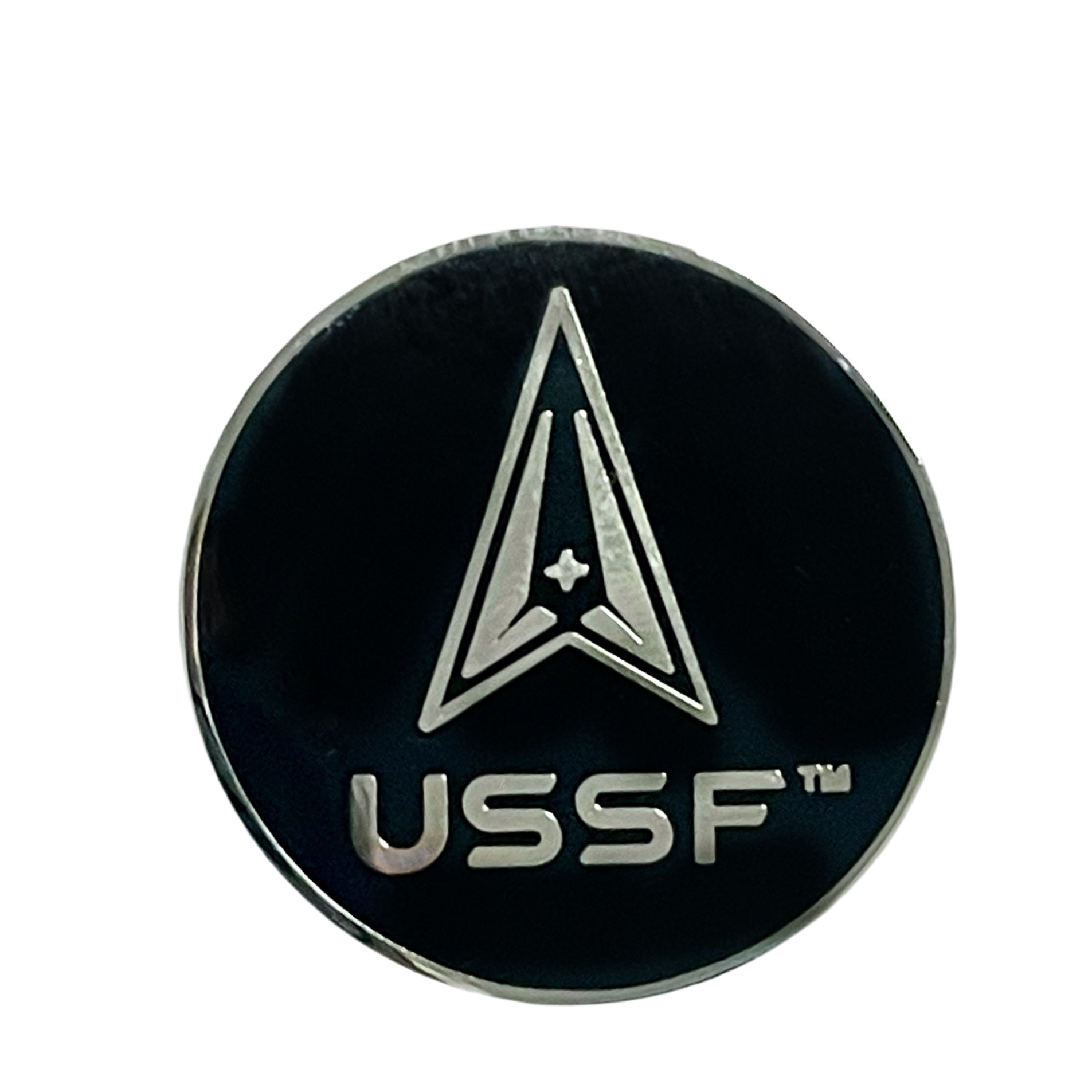 Show off your pride for the Space Force with this lapel pin. Made with high-quality materials, this pin is a must-have for any Space Force supporter or veteran. Wear it on your lapel or display it in a collection to honor the dedication and service of the Space Force.